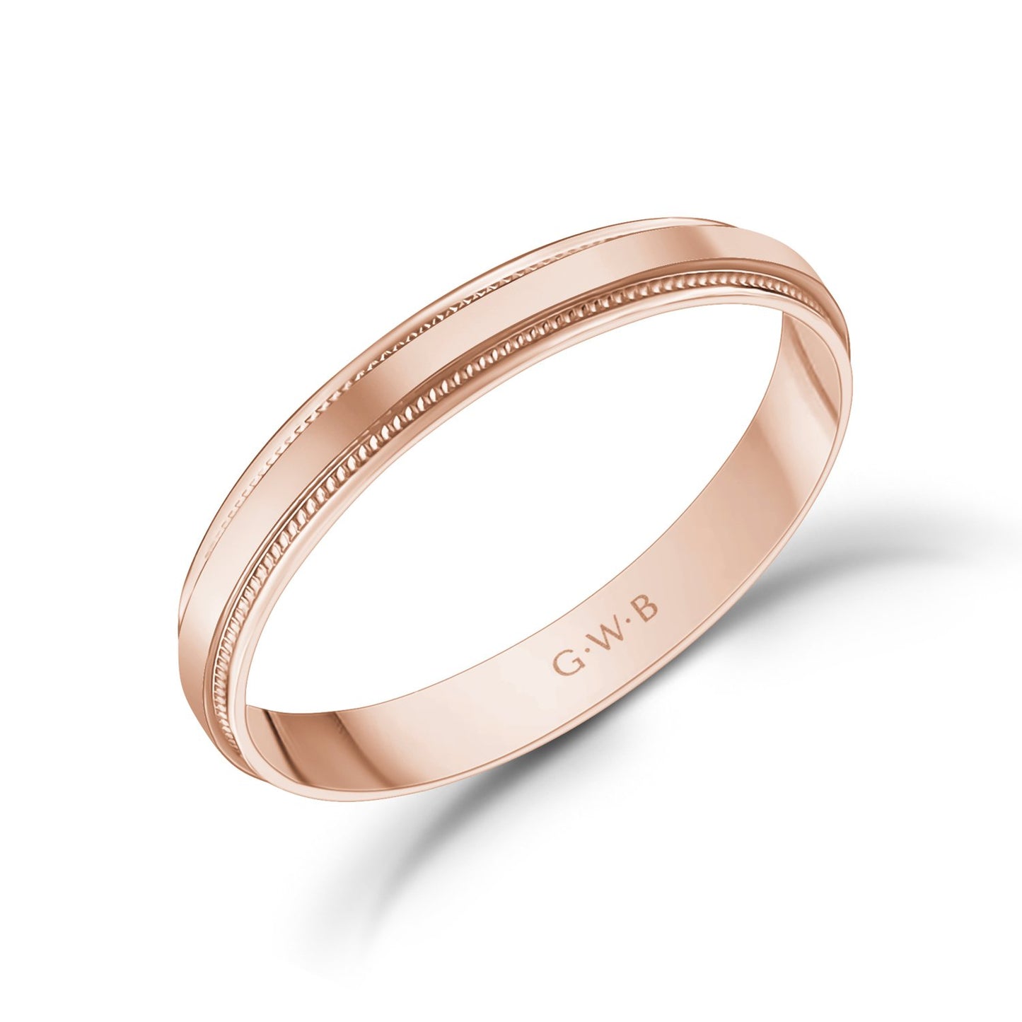 Alliance plate milgrain polie en or 18 carats de 3 mm