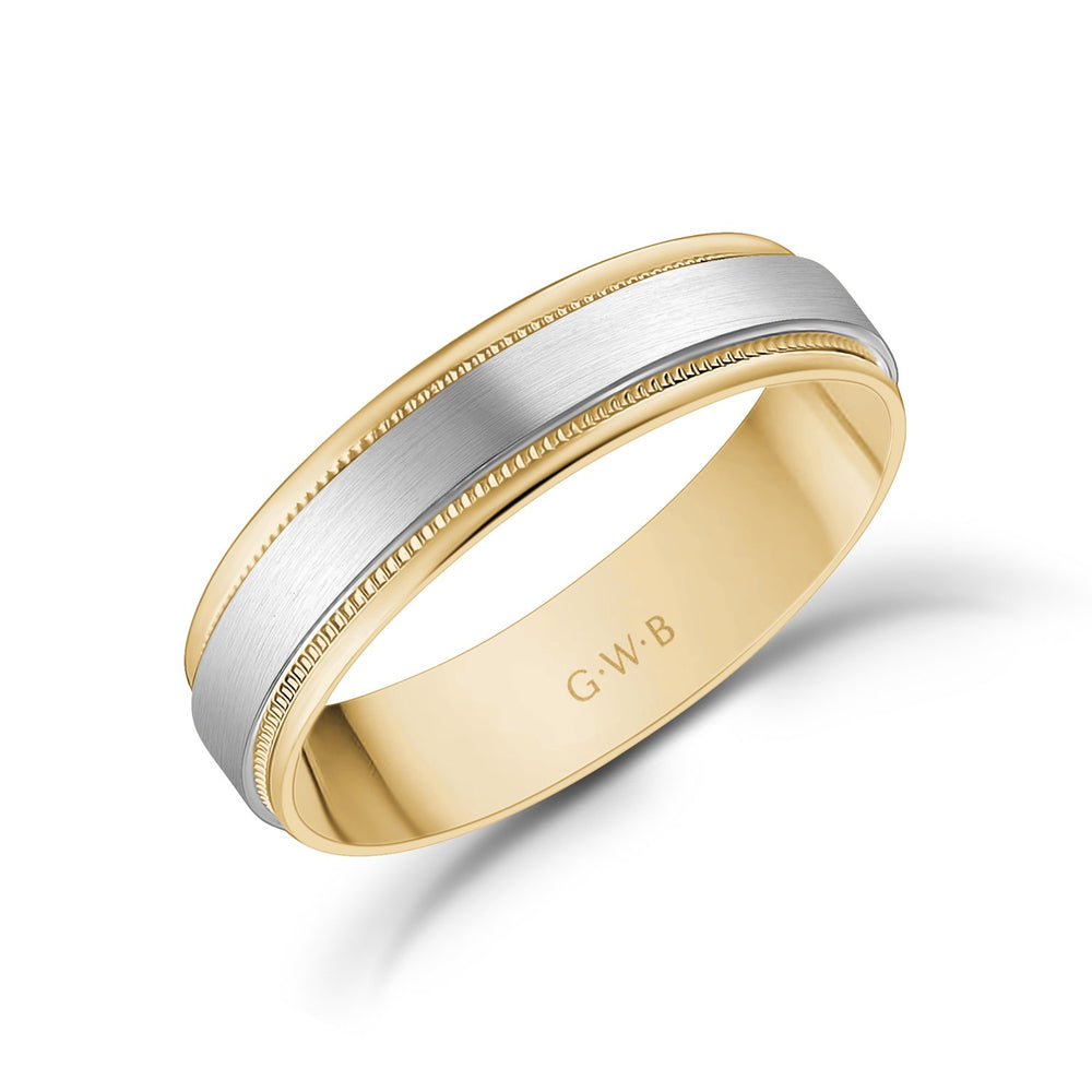 Alliance plate milgrain brossée en or 18 carats de 5 mm