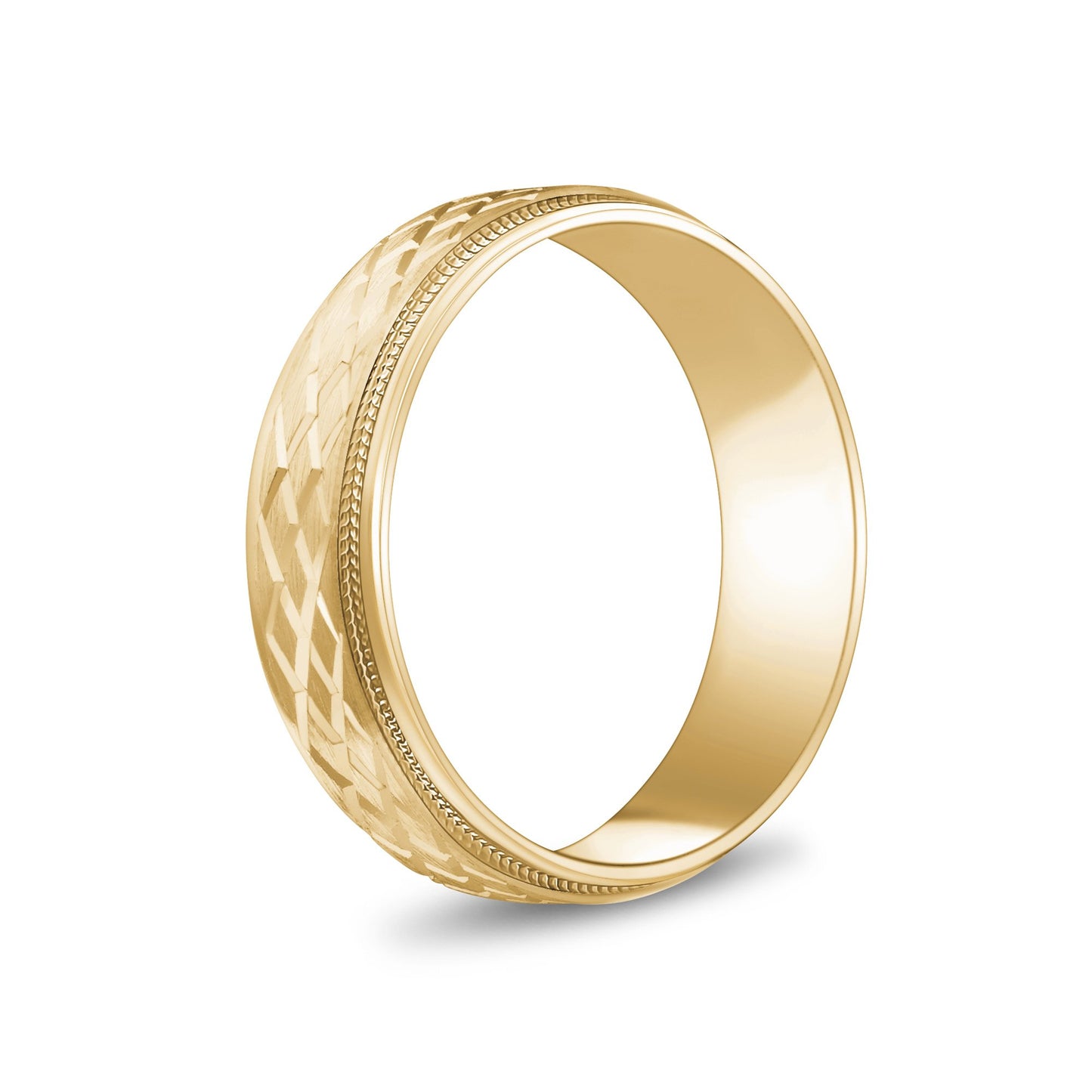 Alliance plate millegrain en or 10 carats de 6 mm avec motif double X