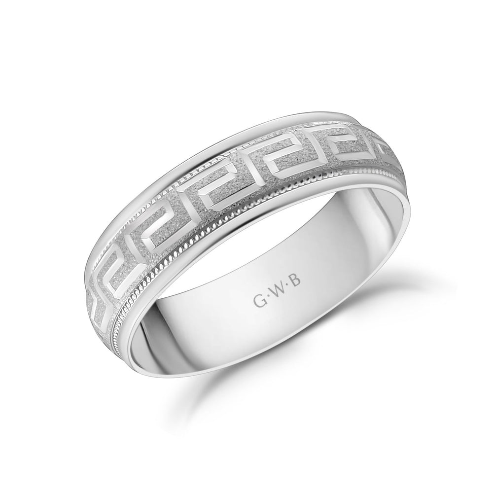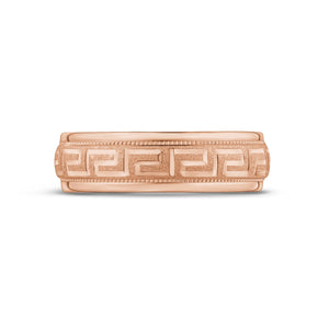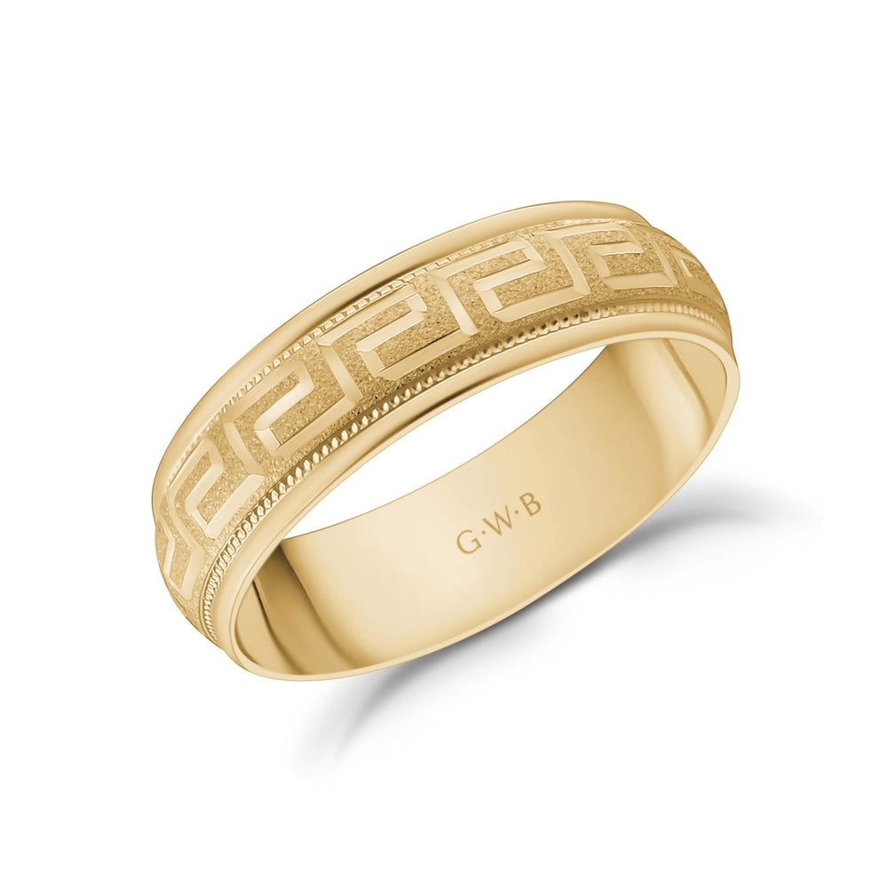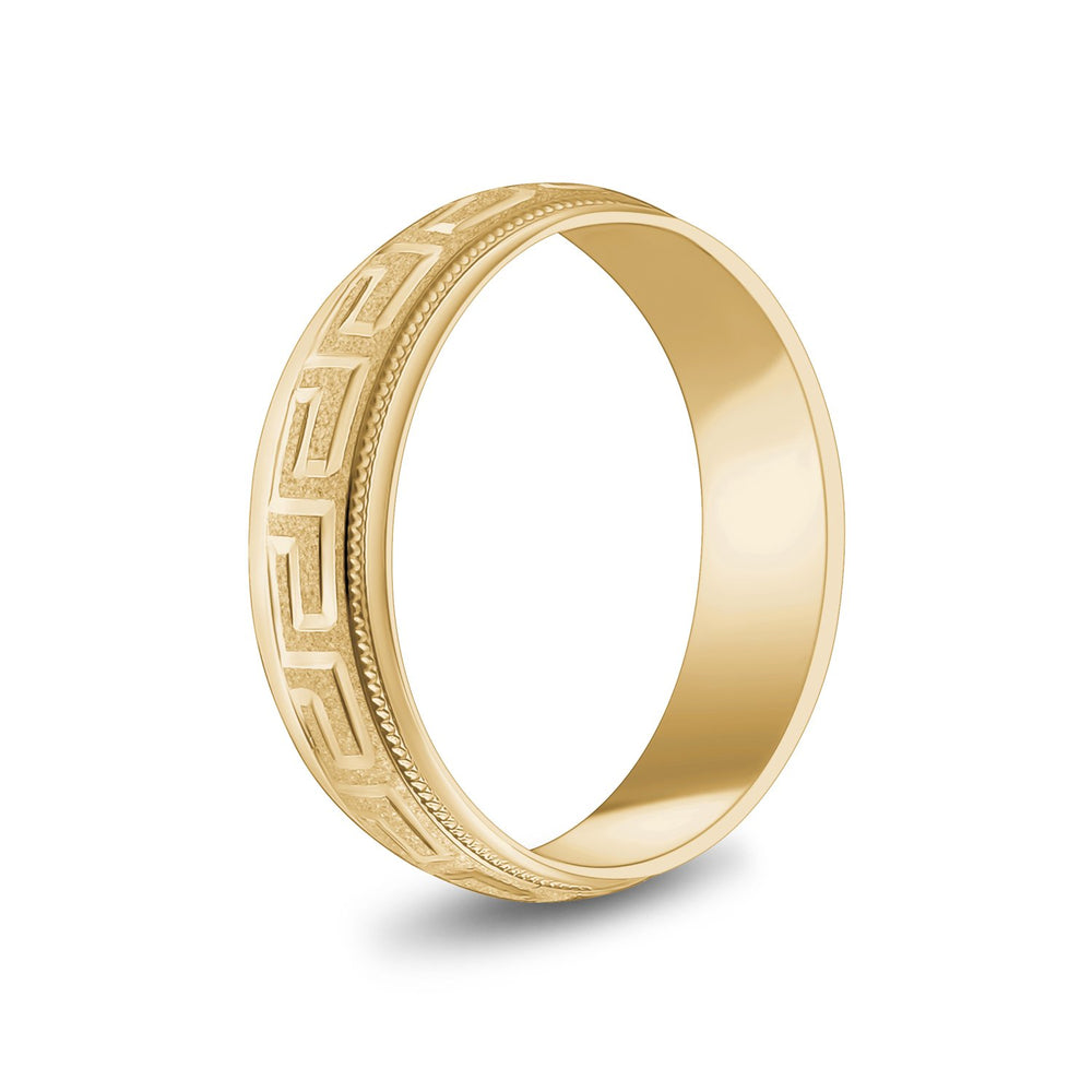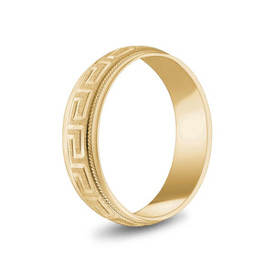 6mm 10K Gold Greek Key Milgrain Dome Wedding Band