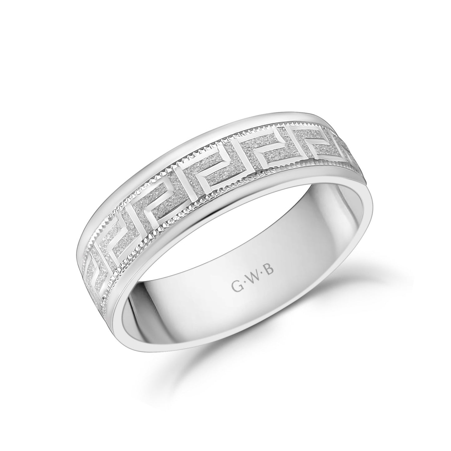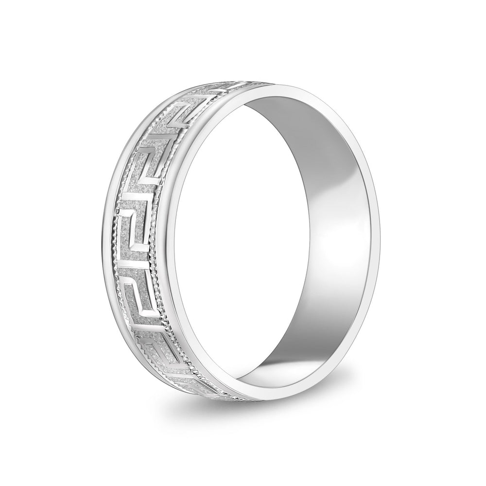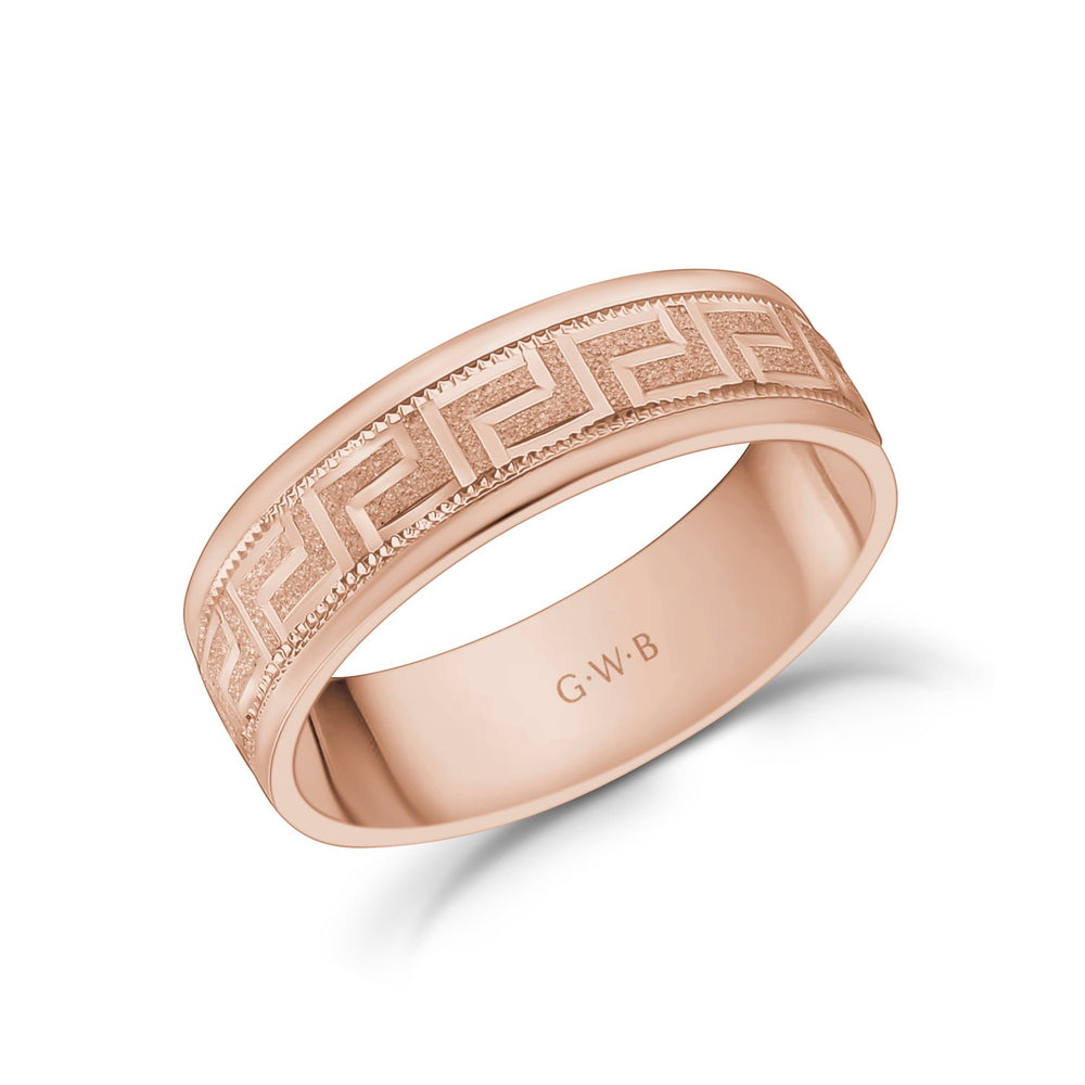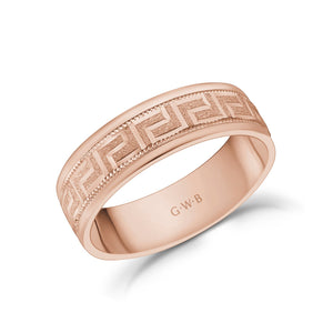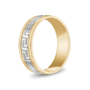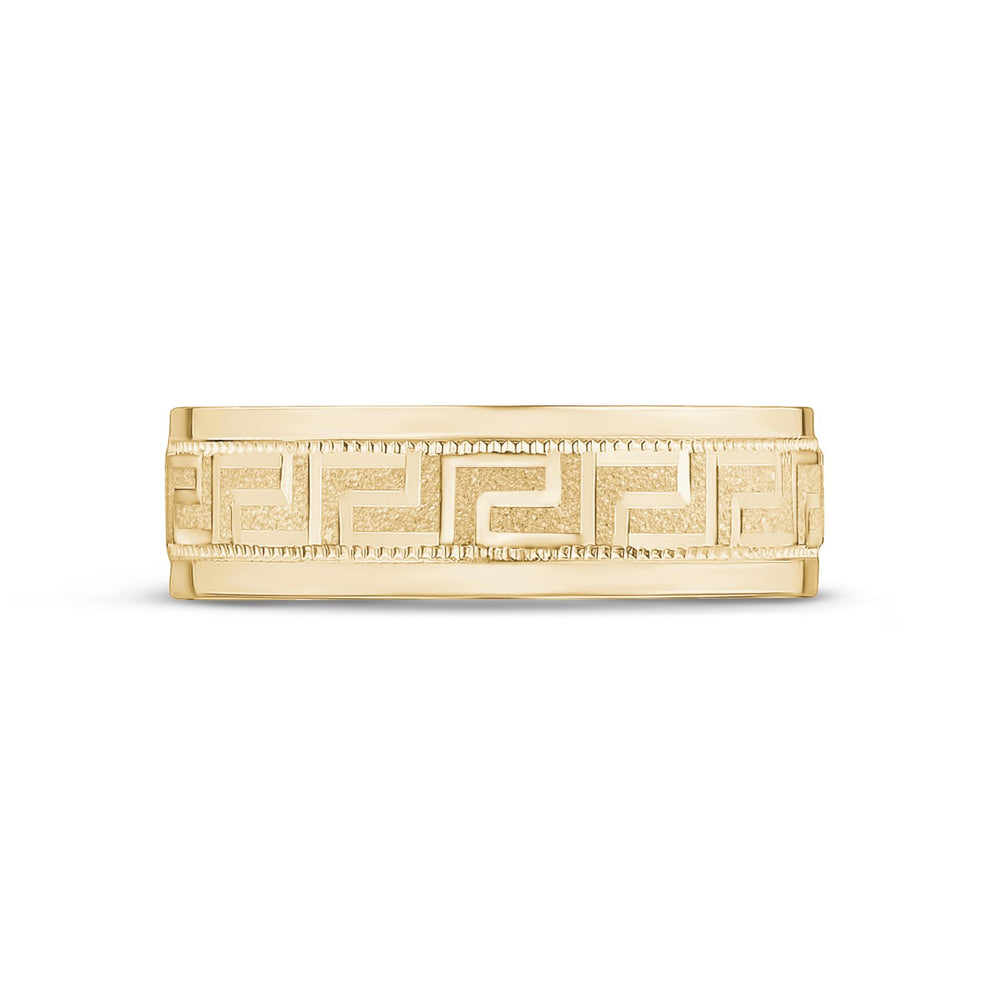 6mm 10K Gold Greek Key Milgrain Flat Wedding Band