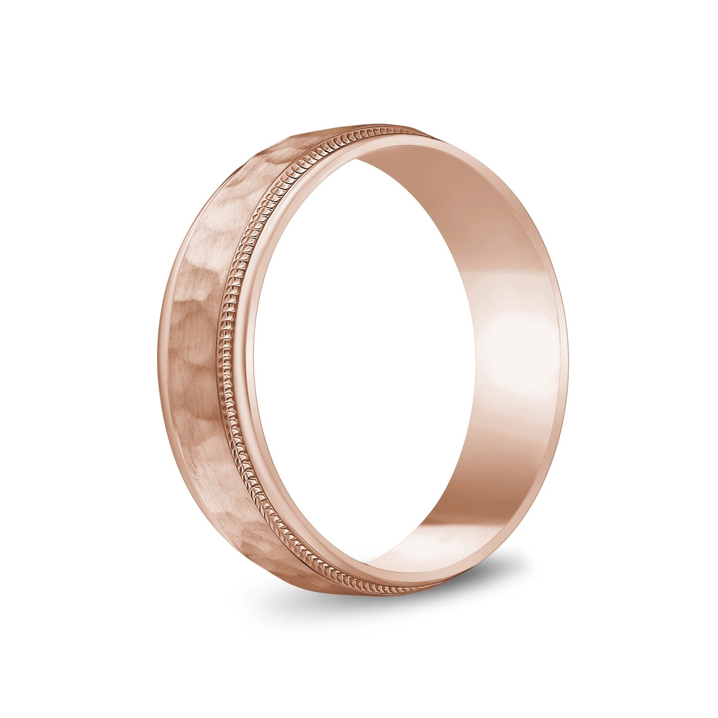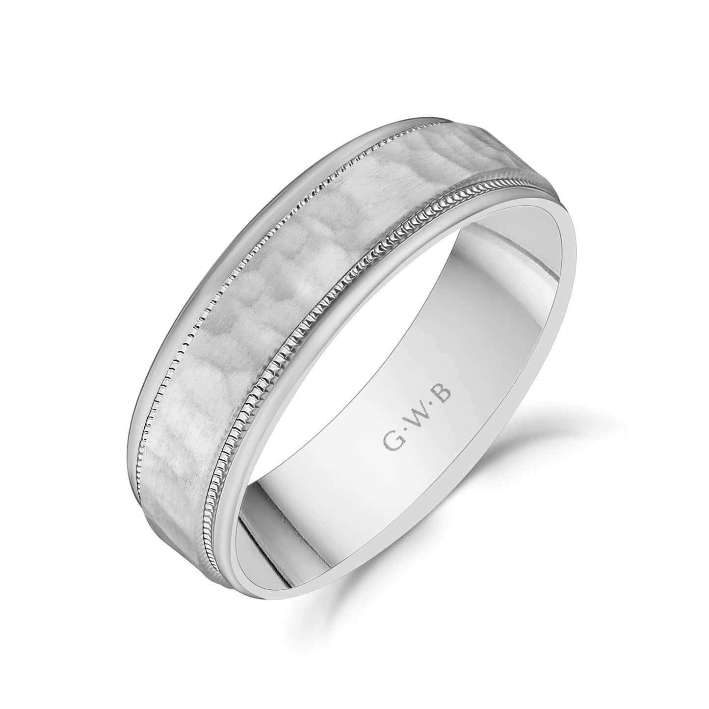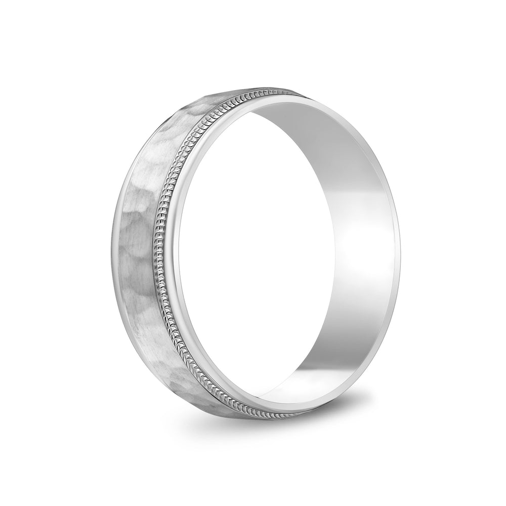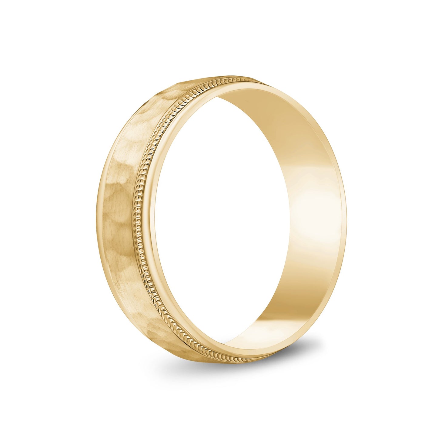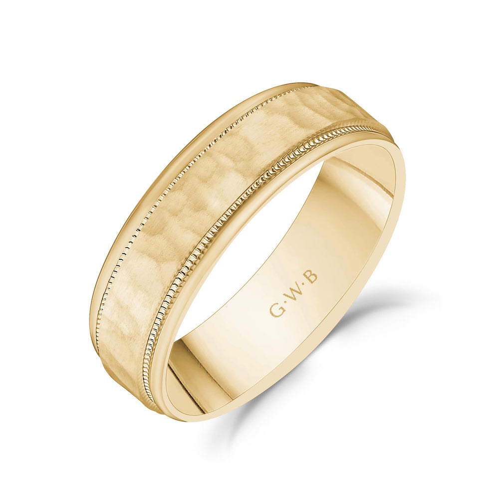 6mm 18K Gold Brushed Center Hammered Milgrain Wedding Band
