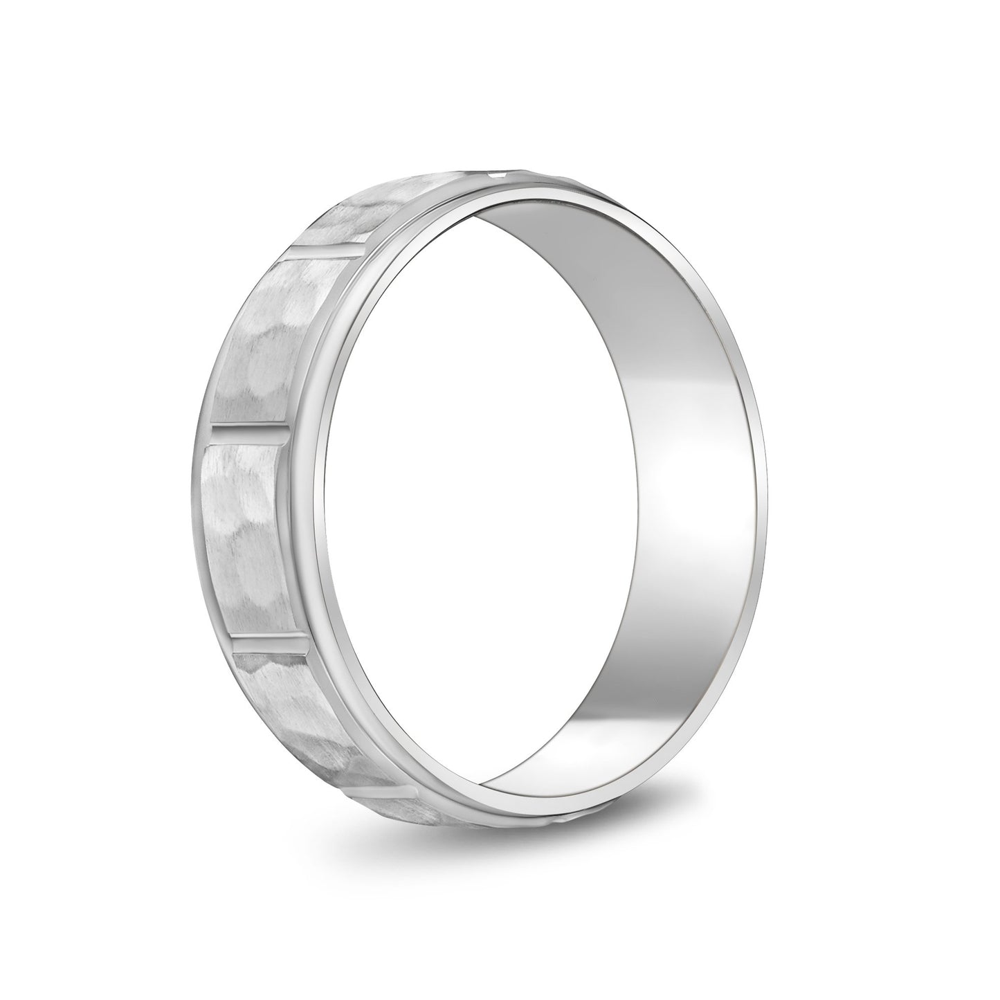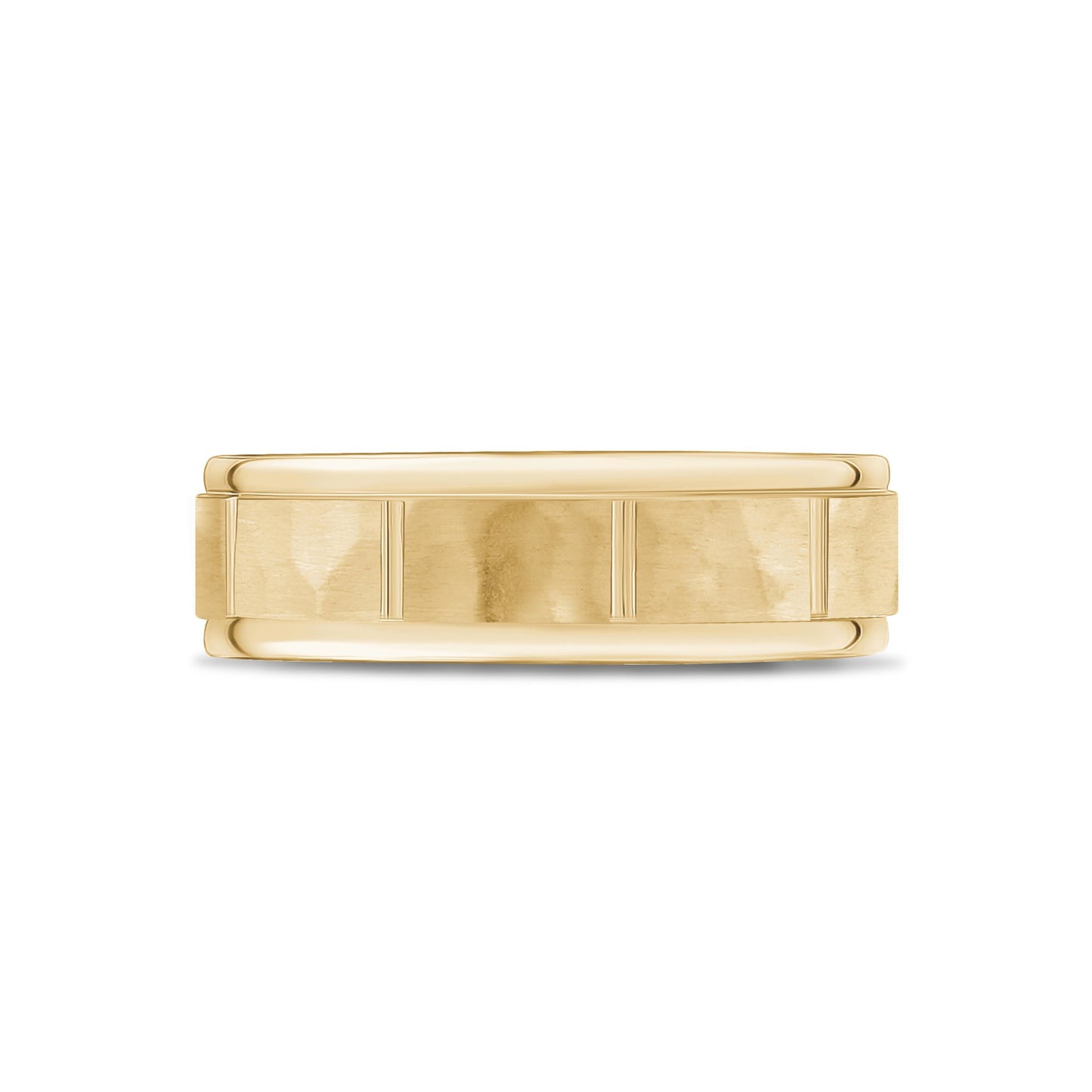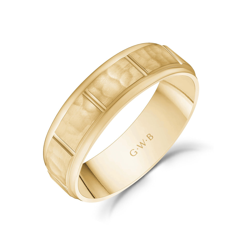 6mm 18K Gold Brushed Center Hammered Wedding Band