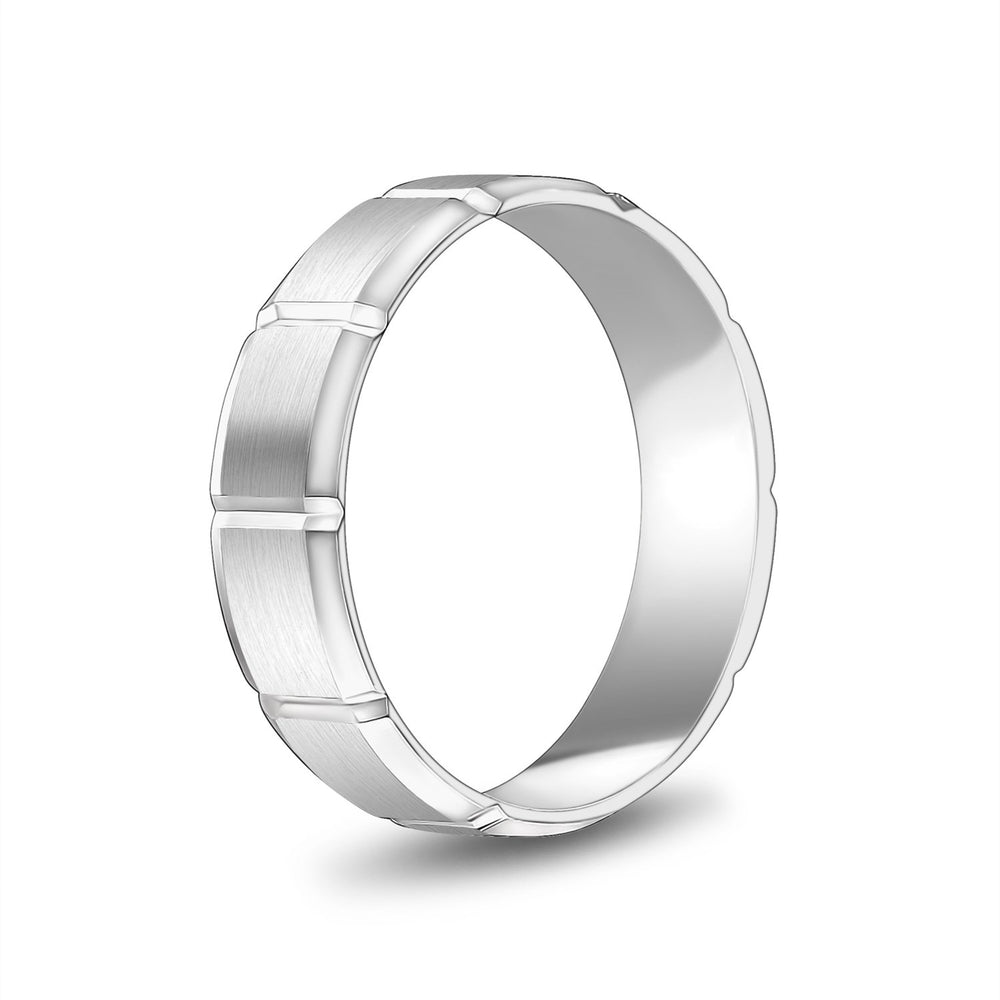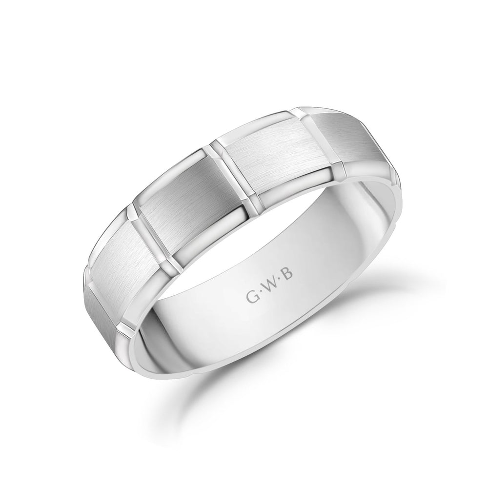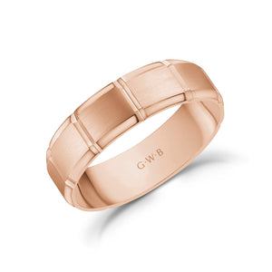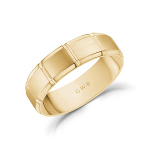 6mm 18K Gold Brushed Flat Beveled Wedding Band