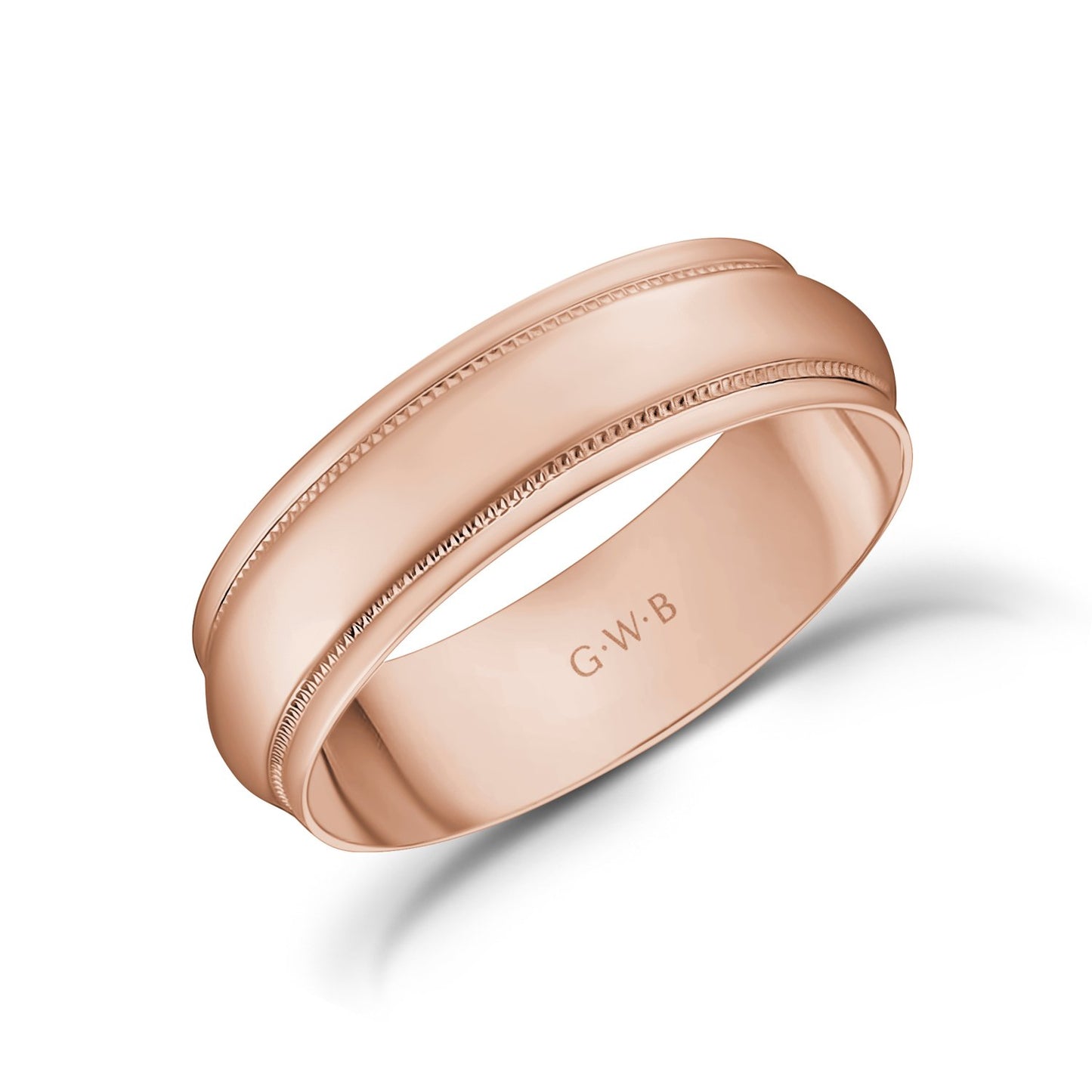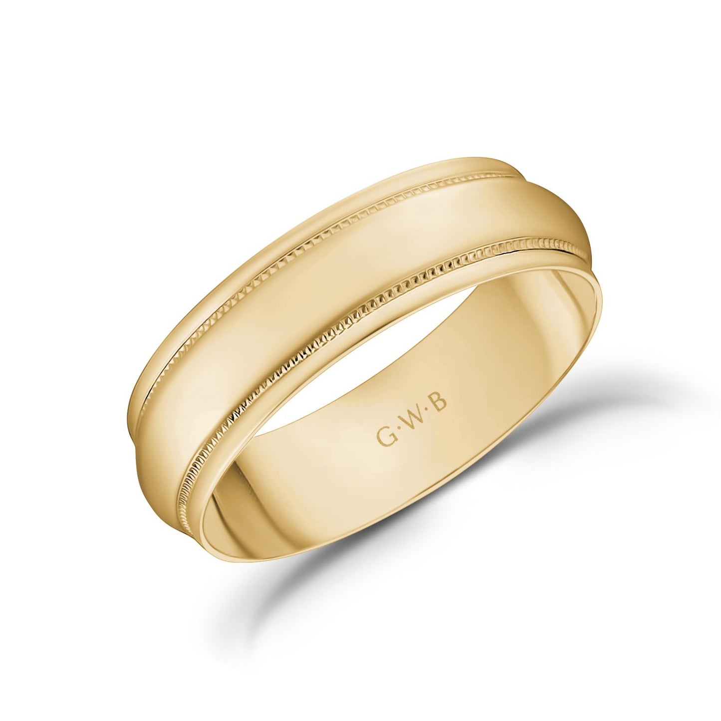 6mm 18K Gold High Polished Dome Milgrain Wedding Band