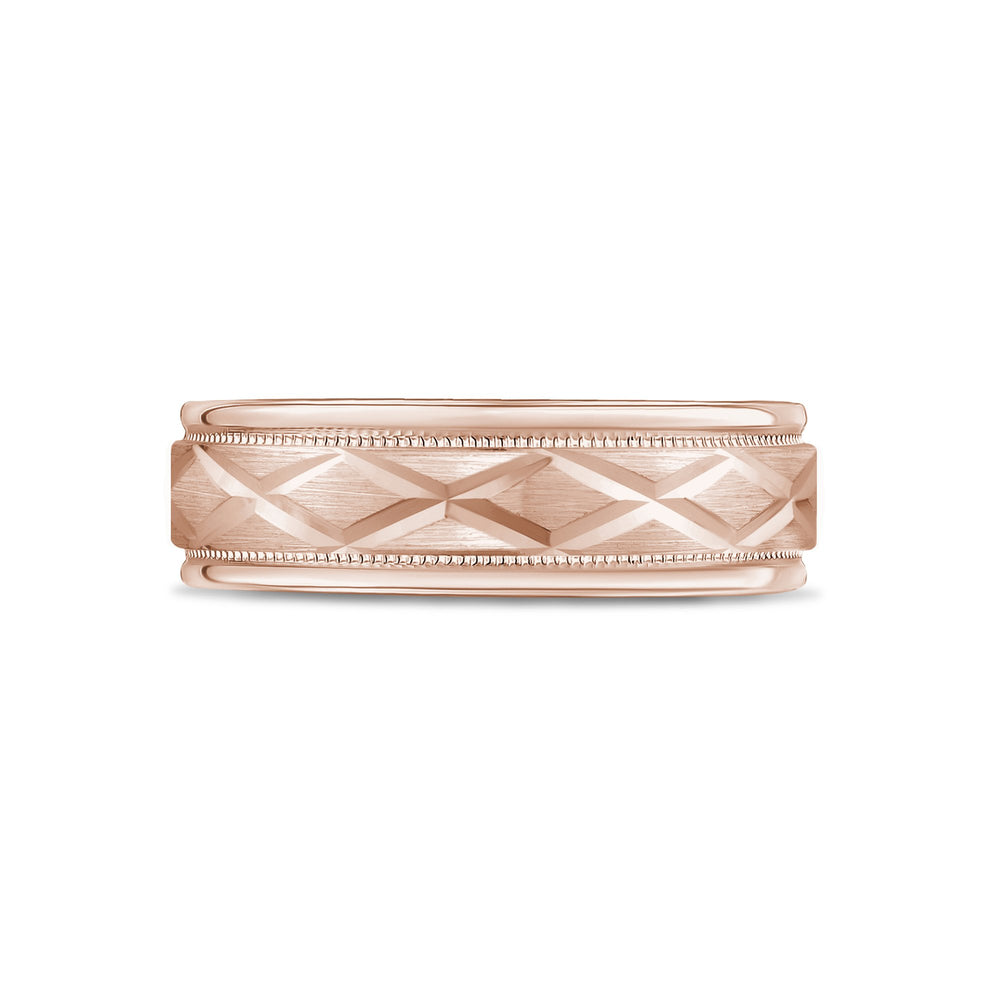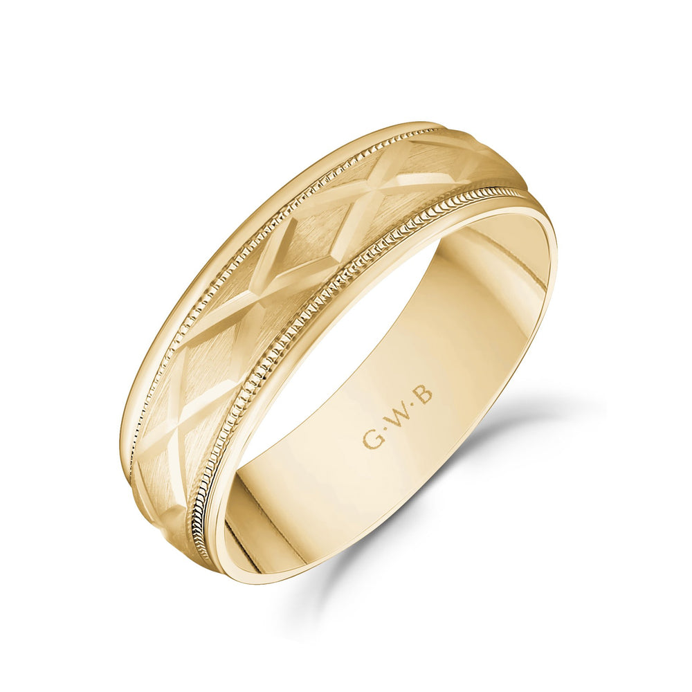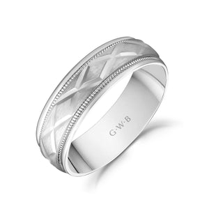 6mm 18K Gold X Design Milgrain Flat Wedding Band